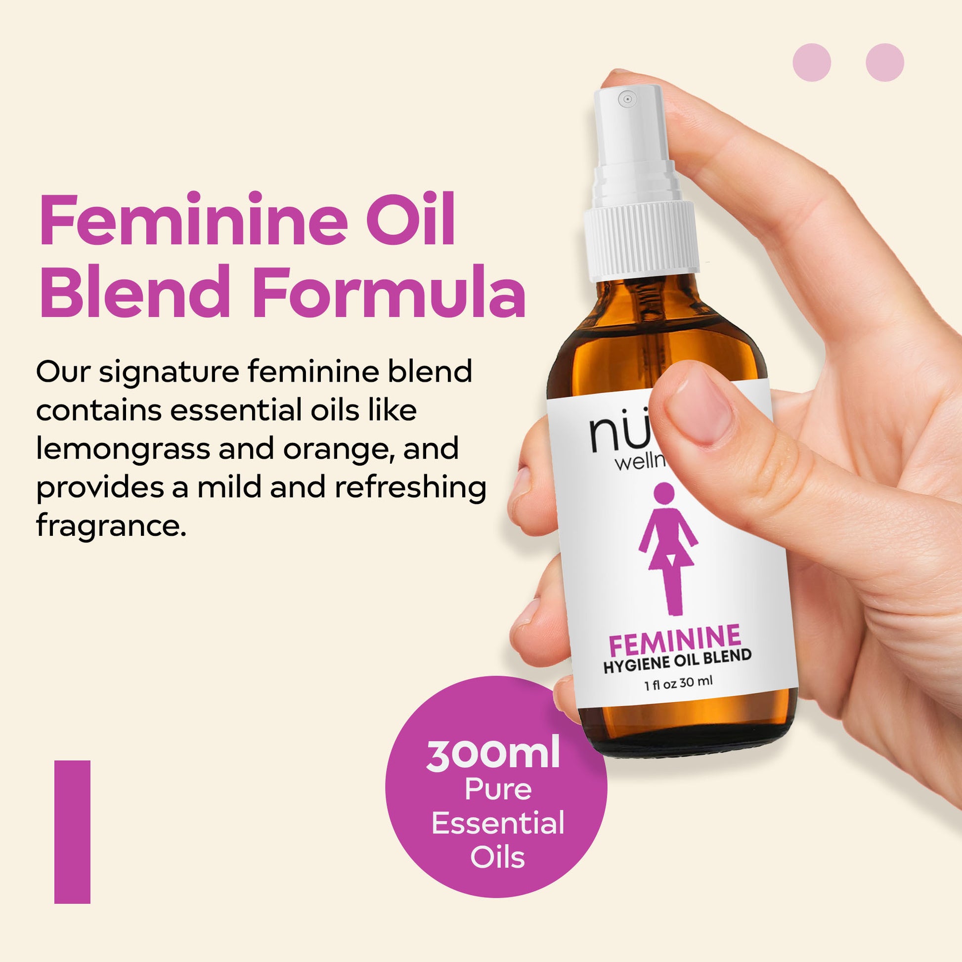 Our compact bottle fits perfectly in your bag or purse, ensuring you're always prepared for on-the-go freshness. We're committed to your well-being. Trust in our products with our 100% customer satisfaction guarantee. If you're not completely satisfied, return it for a full refund, no questions asked. Experience the Nuvo Wellness difference today and enjoy the revitalizing benefits of our Best Feminine Hygiene Oil Spray.